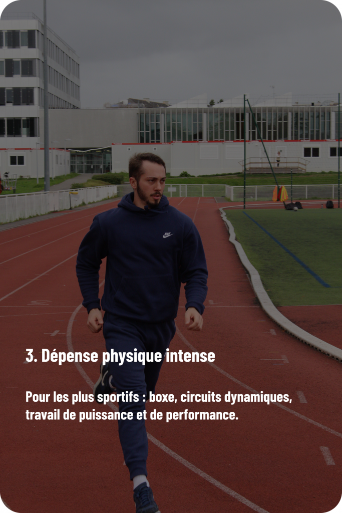 Pour les plus sportifs : boxe, circuits dynamiques, travail de puissance et de performance.